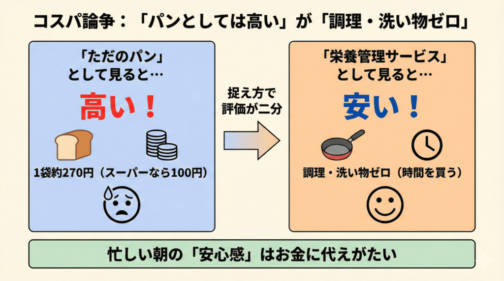 コスパ論争:「パンとしては高い」が「調理・洗い物ゼロ」で元は取れる
