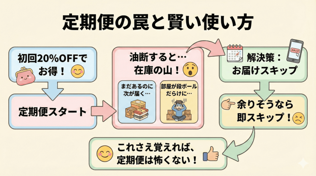 定期便の罠:安くなるが油断するとストックが溜まる問題