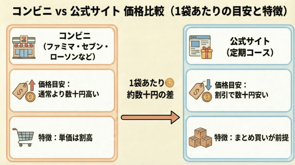 コンビニでの値段は高い?公式サイトとの価格差をサクッと確認