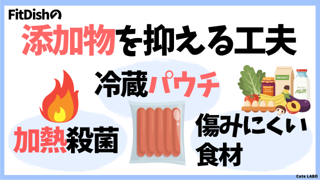 FitDishは「安全・おいしい・便利」を両立させるために、必要最小限の添加物だけを使っています。