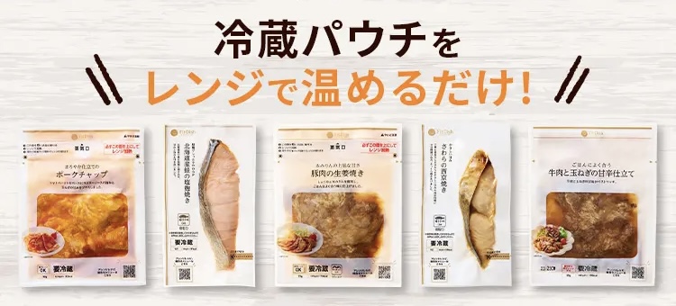 フィットディッシュは温めるだけで即食べられる冷蔵おかずで、献立を考える手間も買い物も不要です。