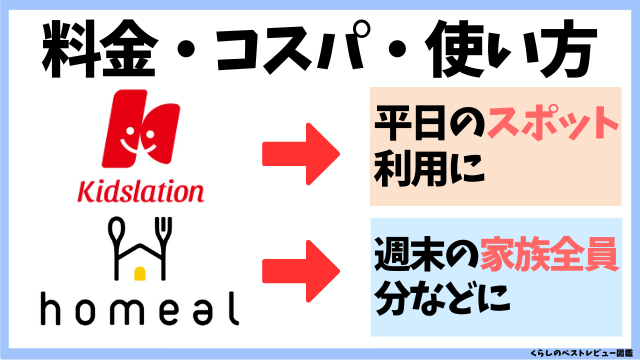 キッズレーションとホーミールの料金・コスパ・使い方のバランス比較