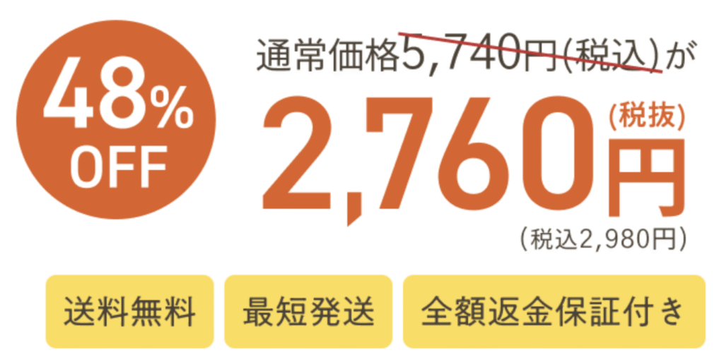 | 初回割引 | キャンペーン時変動 | 初回限定半額、返金保証あり |