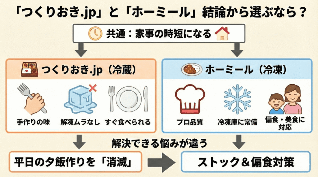 一目でわかる!つくりおき.jp vs ホーミール 比較表